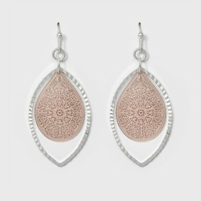 Whether you’re heading into work, getting ready for a night out or just heading to lunch with your girlfriends, these Leaf and Open Oval Earrings from A New Dayโข will add a sleek and stylish finish to your look. The dangling earrings sport oval-shaped leaves embellished with a filigree design in rose gold, set within an open, leaf-shaped silver frame. They’ll pair easily with just about any outfit while adding a touch of glitz and glam to your style.