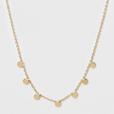 Keep it sleek and simple with the Small Circle Pendant Necklace from A New Dayโข. This choker-length cable-chain necklace features tiny discs for a dainty and delicate look you’ll love. Minimal yet luxe-looking, this is the ultimate modern-chic accessory to, well โ pretty much everything. Your other jewelry might get jealous.