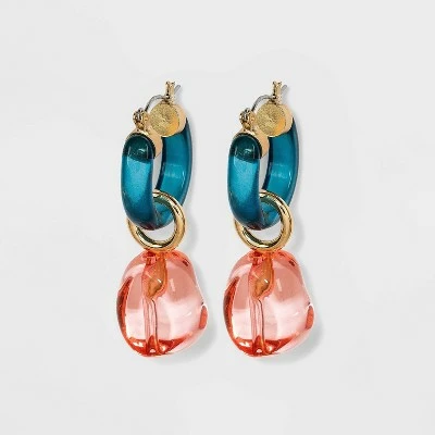 Equal parts chic and playful, you’ll love the style the Transparent Blush Bead Drop Earrings from A New Dayโข bring to your jewelry collection. These earrings are small but sure to stand out, with transparent dark turquoise acrylic hoop earrings holding a second, smaller gold-tone hoop that dangles with a single blush-pink bead for just a touch of movement. The gold-tone hoop adds some sleek shine, while the colorful blue hoop and pink bead are perfect to add some color to any outfit. Create a bold look by pairing the earrings with a yellow sweater, or let the earrings serve as a colorful accent to an all-black ensemble.
