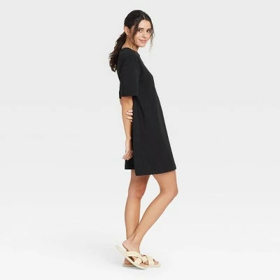 Give your closet a comfy update with this Elbow-Sleeve Knit T-Shirt Dress from A New Dayโข. This comfortable T-shirt dress made from soft, stretchy fabric is sure to become a warm-weather favorite. Styled with a simple crewneck and a mini-length cut, it’s ideal to wear for casual outings. Pair this dress with slip-on flats, casual sneaks or wedge heel sandals to create your own unique personal aesthetic.