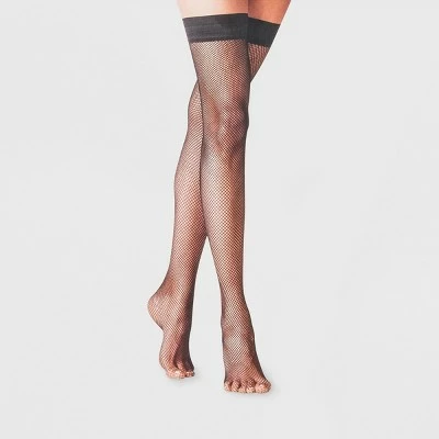 Add some edgy vibes to any outfit with the Classic Fishnet Thigh-High Tights from A New Day. These black fishnets can easily be added into any outfit, whether youre going rocker-chic in leather shorts and a vintage concert tee or you add a sweet style with a lacy dress. If youโre not satisfied with any Target Owned Brand item, return it within one year with a receipt for an exchange or a refund.