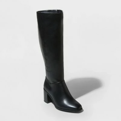 Take your footwear fashion to new heights with these Joy Tall Block Heeled Boots from A New Day™. These tall boots feature a 2.75-inch block heel to add a little drama to your looks. Featuring a faux-leather upper for timeless style, these medium-width boots also feature rubber soles for extended wear. Plus, they’re designed with a full-length zipper on one side for easy slip-on wear that also stays firmly in place throughout your day. Pair them with skinny jeans and a velvet top, or with a midi skirt or dress to take on your day with fashion-forward flair.
