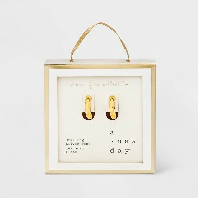 Add polish to almost any outfit with the subtle style of these 14K Gold Plated Tube Hoop Post Drop Earrings from A New Dayโข. Featuring nickel-free metal construction and sterling silver posts, these dainty hoop earrings boast a tube-style design and a 14K gold plated coating for a shiny, polished look. The 0.64-inch drop adds elegance to a variety of necklines and outfits, while also keeping the look simple enough to pair with everyday outfits like a T-shirt and jeans.