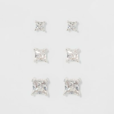 Get just the right amount of sparkle to complete your look with this Trio Crystal Square Stud Earring Set from A New Dayβ’. With a single piercing, you can choose the perfect size for more subtle sparkle or a dazzling statement. If you have multiple piercings and really want your look to shine, wear all three and pull your hair back so the sparkling crystals are on full display.