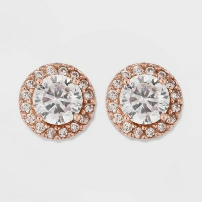 Spruce up your collection of classics with the Halo Cubic Zirconia Stud Earrings from A New Dayโข. With a clear cubic zirconia gem at the center, these earrings boast a rose gold-finished halo of smaller gems for a simply shiny look. The smaller size keeps them dainty and sweet, making for a go-to pair you can wear with casual ensembles or dressier outfits.