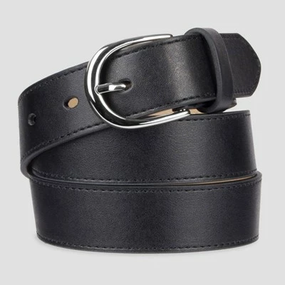 - Rounded tongue buckle with silver finish adds a pop of shine