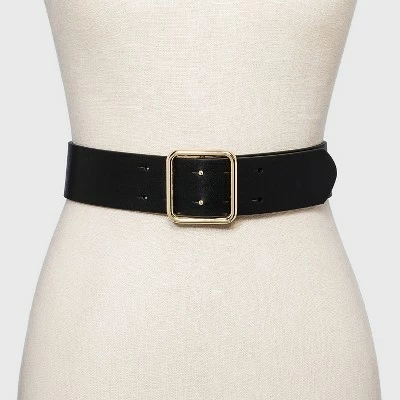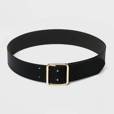 Amp up your everyday wardrobe with this Double Center Prong Belt from A New Dayโข. This solid belt features a simple band in black finish to add a classic touch to your looks, and it has a golden buckle closure for a dash of shine. Plus, the belt features a double center prong closure to let you create a secure fit with a nice cinched-waist look. From high-rise jeans to summer dresses, this belt brings chic appeal to any outfit you pair it with.
