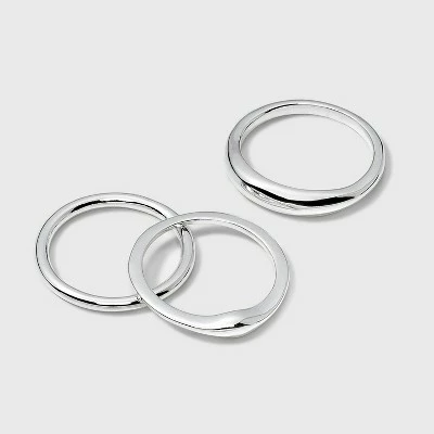 Add a touch of casual elegance to your favorite outfit with this Silver Plated Band Ring Set from A New Day™. This set comes with three silver-plated, nickel-free rings that add a chic touch to any outfit. Each of the 2.4-inch rings differs slightly in shape and width, so you can swap them in and out to choose the ring that’s best for each outfit.