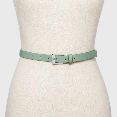 Keep your look on point with the Lacing Buckle Belts from A New Day™. This women’s belt set includes a sleek beige belt with a gold-finish metal buckle, and a green belt with a silver-finish metal buckle — offering you ample options for styling your looks. Perfect for accessorizing everything from your high-rise jeans to rompers to summer dresses and more, these faux-leather belts are the perfect solution to your styling needs.