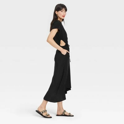 Elevate your everyday closet with this Short-Sleeve Cut-Out Dress from A New Day™. The casual-fit dress features a crew neckline and side and back cut-outs to take your everyday style up a notch. Plus, the handkerchief hem lends a flattering look that’ll move beautifully with your every step. Made from breathable fabric for comfortable wear, this short-sleeve dress also sports side cut-out detailing with a back-tie closure, making it perfect for weekend brunches, casual outings and backyard barbecues. Pair it with sneakers for a lovely weekend look, or with heeled ankle boots for more formal gatherings.