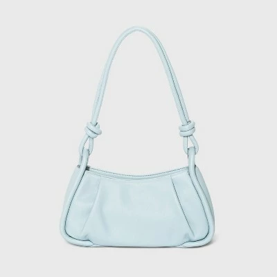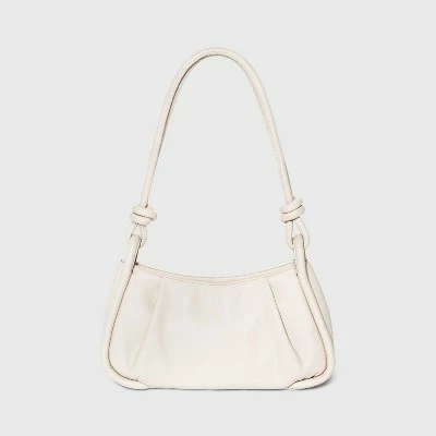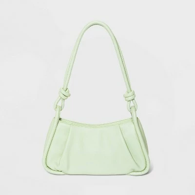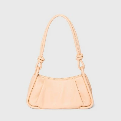 Refresh your accessory collection with the simple yet stylish Double Knotted Shoulder Bag from A New Day™. Designed with a curved top, this shoulder bag features gathered pleating for an elevated look. It comes with a main compartment and multiple interior pockets to help provide ample space for your wallet and other belongings. You can easily mix and match this solid-color handbag with a variety of outfits and carry it with ease thanks to the knotted adjustable handle, and it has a flat bottom that balances easily on tabletops.
