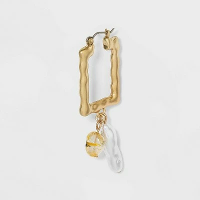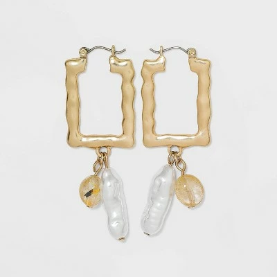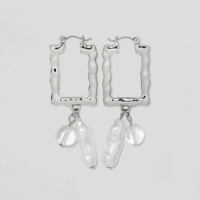 Hoop earrings get taken to the next level with the Hammered Rectangular Hoop Earrings from A New Day™. A unique take on classic hoop earrings, this pair features a rectangular shape in hammered metal with a melty design for a striking look you’ll love. The silver-tone metal adds some shine to any ensemble and the two clear charms on each earring add a touch of whimsy. Whether you’re wearing jeans and a tee or a little black dress, the three-inch drop length of the earrings makes them sure to be a standout accessory, and the nickel-free metal will help prevent irritation.