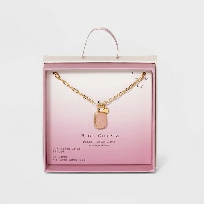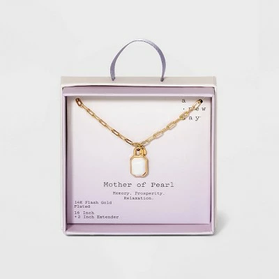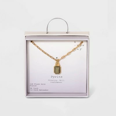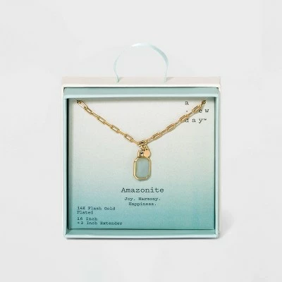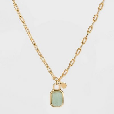 Add some shiny charm to your outfit with the Silver Plated Gold Dipped Paperclip Chain and Semi-Precious Stone 18″ Pendant Necklace from A New Day™. This cute necklace is 18 inches long and works well with a variety of shirt necklines so you can coordinate it with your favorite outfits in every season. This necklace is made from nickel-free metal and features a lobster claw clasp for securing.