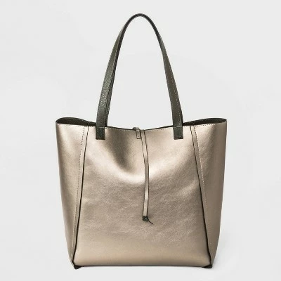 Lend a smart yet stylish finish to your everyday look with this Small Reversible Tote Handbag from A New Dayโข. Crafted from sturdy material for lasting use, this tote handbag comes in a simple and elegant reversible design with a tie closure at the top to keep your keys, phone, makeup and other small essentials securely inside. Complete with double handle for easy carrying, this reversible handbag makes it easy for you to create a completely chic look from head to toe.