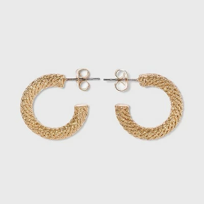 Make a fashion statement anywhere you go with these Twisted Texture Small Hoop Earrings from A New Dayโข. These small hoop earrings make an impressive accessory in your jewelry collection. They feature a broad twisted design in a shiny gold finish to add dimensional texture and luxe appeal to any of your looks. These lightweight hoop earrings have post back closures for secure, easy and comfortable wear, and they’re made from nickel-free metal to suit most skin types. Wear them with black dresses and heels or with everyday casual looks for effortless chic style.