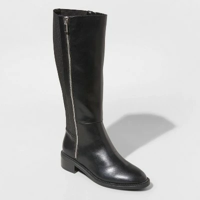 Get ready to rock your look with these Abril Tall Boots from A New Day™. These knee-high boots feature a classic round, closed-toe shape and they’re designed with a 1.5-inch heel to add some lift to your looks. Featuring a faux-leather upper for timeless style, these medium-width boots feature comfortable cushioning inside for comfy wear. Plus, they’re designed with full-length zippers on each side for easy slip-on wear that also stays firmly in place throughout your day. Pair them with skinny blue jeans and a chambray top, or with a midi skirt or dress to take on your day with style.