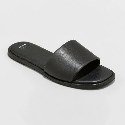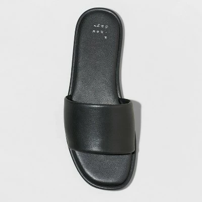 Update your casual footwear wardrobe with these Lulu Slide Sandals from A New Day™. These simple yet stylish sandals feature broad top bands to help keep them in place on your feet, and the open design offers cool comfort. With a slip-on design for quick and easy wear, these versatile sandals pair perfectly with everything from shorts to dresses, allowing you to create a variety of fun warm-weather ensembles.