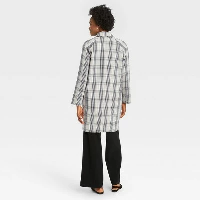Layer on the sophisticated style with this Plaid Anorak Jacket from A New Dayโข. This knee-length jacket features notched lapels and two front buttons for a polished look, while the cream and black plaid pattern adds timeless elegance to your wardrobe. Featuring a single welt pocket for added convenience, this sleek anorak jacket has a 100% cotton shell for breathability and comfort. Slip it on over a blouse and slacks for a look that’s all business, or pair with pumps and your favorite dress for a date night out.