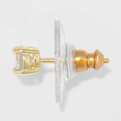Add a stunning touch of sparkle to your look with these Gold/Clear Gold Over Sterling Silver Round Cubic Zirconia Stud Fine Jewelry Earrings from A New Day™. This set of cubic zirconia studs in two different sizes gives you options to choose from. Showcasing round-cut clear cubic zirconia stones held in a secure four-prong setting, these brilliant earrings are both simple and elegant. Enhanced with a highly polished finish and a touch of gold, these beautiful sterling silver earrings add shine to your everyday looks, and make for a sparkling accessory you’re sure to love. Effortlessly complement any of your casual or formal outfits with their dazzling classic look.