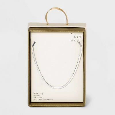 Add simply elegant style to your everyday outfits with this Sterling Silver Herringbone Chain Necklace from A New Dayโข. This herringbone chain necklace comes in a metallic finish for glamorous appeal. Made with nickel-free metal, this choker length necklace suits all skin types whether you wear them together or paired with other accessories in your collection.