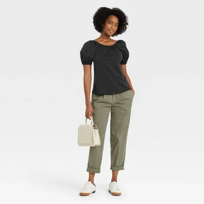 Bring effortless charm to your outfit with the Puff Short-Sleeve Tie-Back Top from A New Day™. Featuring a solid hue, this pullover top is styled with a gathered neckline, puffed short sleeves and a large bow in back to add statement style to your look in a way you’ll love. The top is crafted of 100% cotton to give you breathable, reliable comfort, and it’s tailored in a relaxed, below-waist fit for easy pairing with skirts, skinny jeans, chic faux-leather pants and much more.