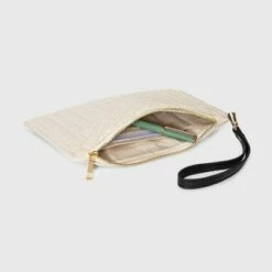 Carry everything from your phone to cash and more in style with this Natural Large Pouch Clutch from A New Day™. This large-sized pouch clutch in a neutral cream color makes a practical and versatile accessory for everyday use. It features a rectangular structured shape that’s decorated with allover stitched detailing for a chic textured look. The zipper closure to the main compartment helps keep your items contained, and it opens to reveal a cell phone pocket and credit card slots to make organization neat and simple. Plus, the attached loop strap makes for easy carrying.