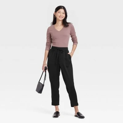Cute and cropped, the High-Rise Slim Straight Ankle Jogger Pants from A New Day™ are perfect for comfortable all-day wear. These solid-hued sweatpants are made from soft fabric with a poplin lining to keep you nice and relaxed no matter where you’re headed. A high-rise silhouette shapes the solid-hued jogger pants for a flattering look, while the drawcord on the elasticized waistband lets you customize the fit to your liking. They’re tailored in straight, slim-fit style with a satin weave to add a bit of shine, as well as side slits on the ankles that lend easy movement with a laid-back look. Wear them with a nice tee or sweatshirt to the market, the studio or while lounging at home.
