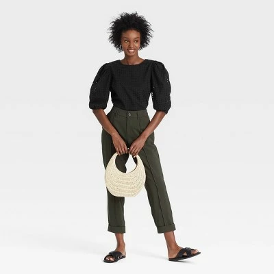 Add a dash of style to your everyday look with this Short Puff-Sleeve Eyelet Top from A New Day™. This puff-sleeve top has a round-neckline that’s accented with an allover eyelet design for a pretty silhouette that’s perfect for every occasion from day to night. This puff-sleeve eyelet top is made from 100% cotton fabric with lawn lining that helps you stay cool and comfy whether you’re out shopping, on a date or just hanging with friends. Pair this with any style of bottoms in your closet for a number of versatile looks you’ll love.