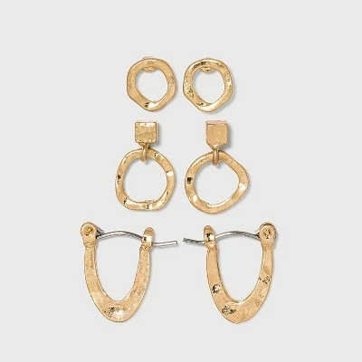 - 3pc hammered earring set adds artistic flair to your accessory collection