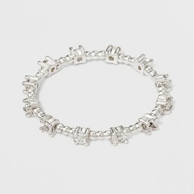 Bring some glam to your everyday look with the Silver-Plated Cubic Zirconia Textured-Band Ring from A New Day™. This silver-finished ring features connected spheres dotted with sparkling cubic zirconia stone in silver-finished settings. Wear on its own to let it shine or stack with other rings to create a look that’s all your own.