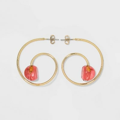 Add modern design to your jewelry collection with these Swirl Hoop with Bead Earrings from A New Dayโข. These swirl-shaped earrings make a versatile accessory for any occasion. They feature a circular design in a gold-tone finish accented with a pink bead for a mix of fun style and shine. These lightweight swirl hoop earrings come with post-back closures for secure and comfortable all-day wear, and they’re made from nickel-free metal to suit most skin types. Wear them with a boho-inspired dress and heels or with everyday casual looks for effortless style.
