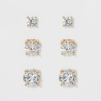 A simple touch of sparkle is all you need to complete any outfit, and you can do just that with the Round Crystal Stud Earrings from A New Dayβ’. The quartet of prongs adds defining detail to these simple stud earrings, while the clear crystal makes for a versatile piece of jewelry. To add to the versatility, this set of three offers varying sizes so you can find exactly what you need for your ensemble. Whether youβre dressing up for an elegant soiree or simply running errands, youβll reach for these earrings time and again for their classic look.