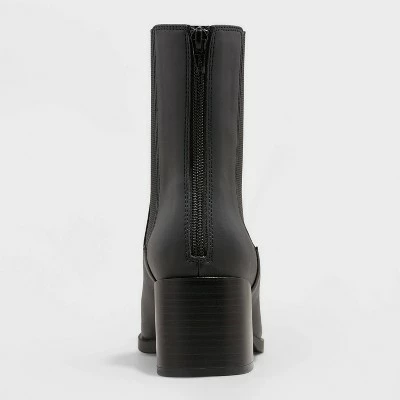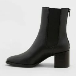 Add fashionable flair to your looks with these Itzel Chelsea Boots from A New Day™. Featuring a classic Chelsea boot design with an elastic panel at each side for some stretch and flexibility, these medium-width boots are designed with a back zipper for easy on and off, while the soft foam cushioning offers your feet all-day comfy wear. In a solid faux-leather finish for timeless appeal and with a 2.5-inch block heel to add some height, you can easily pair them with anything from a crewneck tee and skinny jeans for a casual outing to a blouse and flat-front trousers for an easy transition into your work ensemble.