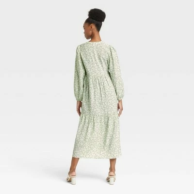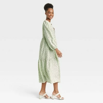 Get ready for casual outings in easy-breezy style with the Long-Sleeve Tiered Dress from A New Dayโข. Adorned with a beautiful crinkled texture, this loose-fit maxi dress is finished with a flattering V-neckline and a tiered bodice that creates pretty movement as you walk through your day. Cut from a lightweight fabric, this pullover dress provides you with a comfortable fit, while the balloon sleeves wrap your arms with a statement look โ simply pair it with your favorite closed-toe heels and carry a clutch in hand to complete your look for a fun outing.