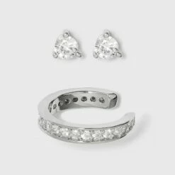 Best deal ๐ Sterling Silver Round Cubic Zirconia Stud and Ear Cuff Set – A New Day™ Silver ๐งจ