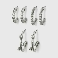 Deals โญ Sterling Silver Triple Cubic Zirconia Stud and Hoop Earring Set 3pc – A New Day™ โญ