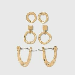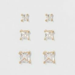 Deals ๐ Women's Fashion Trio Crystal Square Stud Earring Set 3pc – A New Day™ Silver/Gold โจ