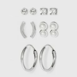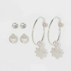 New ❤️ Sterling Silver Cubic Zirconia and Butterfly Stud Earring Set 3pc – A New Day™ Silver 😍