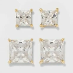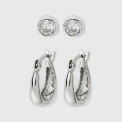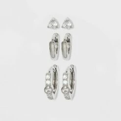 New ๐ Sterling Silver Cubic Zirconia Stud and Huggie Hoop Trio Earring Set – A New Day™ โ๏ธ