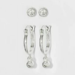 Outlet ๐ Sterling Silver Cubic Zirconia Hoop Stud Earring Set 2pc – A New Day™ Silver ๐