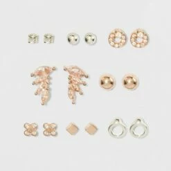 Outlet ๐งจ Cubic Zirconia Studs, Balls Multi Earring Set 8pc – A New Day™ Silver/Gold โ๏ธ