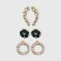 Buy ๐ Evil Eye Stud and Cubic Zirconia Studded Hoop Earring Set 3pc – A New Day™ Gold โ๏ธ