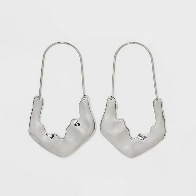 Simple gold hoops get taken to the next level with the Molten Hammered Hoop Earrings from A New Day™. A unique spin on classic hoop earrings, this pair features thin wires that flow into hammered metal bottoms with a melty design for a striking look you’ll love. The gold-tone metal adds some shine to any ensemble and looks just as appropriate dressing up a V-neck tee and jeans as adding the finishing touch to a chic cocktail dress. Whatever you choose to pair them with, the four-inch drop length of the earrings makes them sure to be a standout accessory, and the nickel-free metal will help prevent irritation.