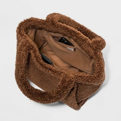 Add wintry charm to your accessory collection with this Party Tote Handbag from A New Day™. Designed in a solid color, this tote handbag features a faux fur exterior for a soft feel and look you’ll love pairing with your outfits. The interior is designed with a main compartment and multiple pockets to help keep your cell phone and other belongings that you need when you’re out and about. And with the double handles, you can easily carry this solid-color handbag whether you’re out for shopping, casual date or any other occasion.