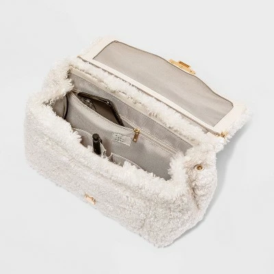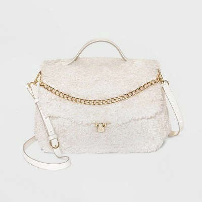 Add unique style to your outfits while providing a convenient option for your everyday carry with this Quilted Top-Handle Turn-Key Closure Satchel Handbag from A New Dayโข. This structured satchel handbag boasts tons of details, including quilted stitched details on the faux leather shell for a chic textured look. The top flap features a metal chain detail as well as a turn-key closure for charming vintage-inspired details, while a single top handle and adjustable shoulder strap offer you multiple options for comfortable carry in your hand, over your shoulder or across your body.
