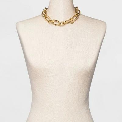 Expand the options in your jewelry collection by adding this Chunky Oval Open Chain Link Necklace from A New Day™. Its choker length and shiny, gold-finished chain links make it the ideal piece for highlighting tops with high or low necklines. The chunky, open chains give it a chic, feminine look sure to draw attention in whatever you wear it with. It has a lobster clasp with an adjustable length to help you find the fit that best suits you.