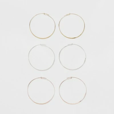 Find beauty in simplicity with the Thin Hoop Earring Set from A New Dayโข. In shining rose-, white- and yellow-gold tones, these wire hoops are delicate, chic and easy to coordinate with your other accessories. The wire flattens out toward the bottom to provide a little added interest, and the wire loops around at the back to provide an integrated closure. Pair these simple hoops with anything from your most casual jeans to glamorous dresses โ they really are that versatile!