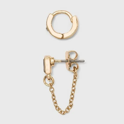 Add variation to your jewelry routine with the Crystal Glass Stud and Small Hoop Earring Set from A New Dayโข. This set includes eight pairs of stud and hoop earrings in different designs, with studs set on post hardware with butterfly backs for comfortable, secure wear and huggie hoop earrings with tidy integrated closures. Embellished with glass gems in round and baguette cuts, this gold-tone earring set has plenty of shine, and the earrings range from simple to glam to suit your every mood. Each pair can be worn separately for a minimalist vibe that’s easy to dress up or down, and they coordinate well when you want to rock multiple pairs for that little something extra.
