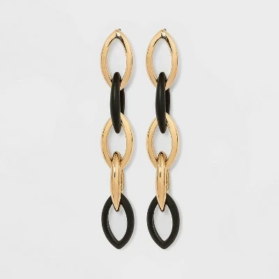 Elevate your occasional or party looks by accessorizing your outfits with these Dangle Link Earrings from A New Day™. Showcasing multiple oval gold-tone and solid-color links, these earrings make a stunning addition to your earring collection. Wear the link earrings as solo pieces or pair them with other accessories in your collection to complete the gorgeous look.