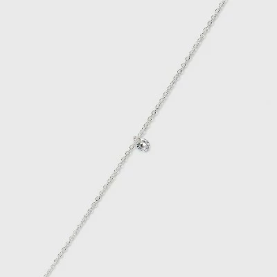 Add more sparkle to your look with the Sterling Silver Pierced Cubic Zirconia Anklet from A New Dayโข. This cute anklet features a bright sterling silver chain with a small cubic zirconia charm that brings a sparkly touch to your look. It has a polished finish to complete the look while spring ring clasp closure helps keep it firmly in place. Perfect for pairing with heels, sandals or low-ankle shoes, this anklet is sure to bring a fresh touch to your style.